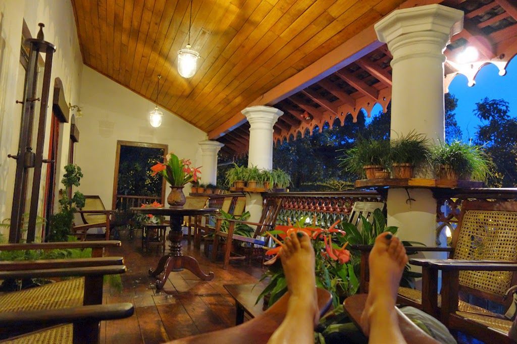 Royal Bar & Hotel un precioso y carísimo hotel que nos transporta al antiguo Ceilán colonial. En el patio sólo hay hombres, locales la mayoría, bien vestidos, tomando copas. Nosotras no somos tan elegantes, pero nadie nos mira mal. Probamos las fresquitas cervezas locales y brindamos por el próximo viaje.