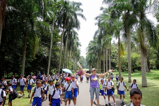 Entonces descubrimos que los jardines botánicos de Peradeniya son el paraíso de las excursiones escolares ceilandesas. Hay miles de niños, de todos los tamaños y uniformes posibles y todos, absolutamente todos nos saludan a gritos y no paran hasta que les contestamos uno por uno. Imposible concentrarse en las plantitas, los nenes nos ponen la cabeza como un bombo. Los adolescentes no se conforman con el saludo y nos piden posar con ellos para las fotos del móvil, mientras nos rozan tímidamente algo tan casto como espalda o el brazo provocando enorme algarabía. De vez en cuando conseguimos abandonar el camino principal y dejar de escuchar por unos segundos