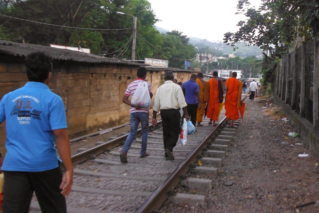 Varios monjes con túnicas color azafrán caminan también por los raíles. Soraya insiste en que nuestro acompañante sólo ligar conmigo, ya que le ha estado haciendo el vacío todo el tiempo. Soraya