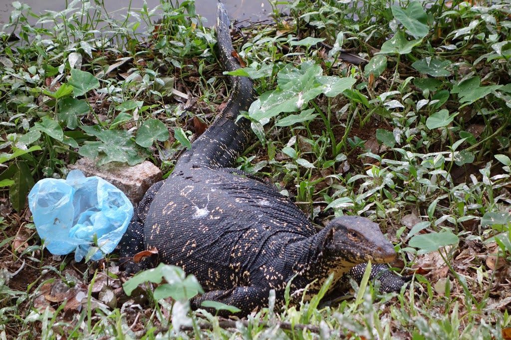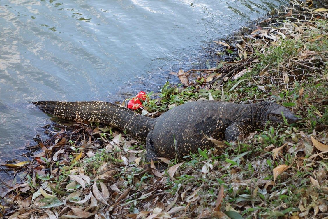 Después nos vamos a dar un paseo por el lago sagrado (en Kandy todo es sagrado). Se nos acopla un plasta que nos pregunta si nos importa que nos acompañe. Le digo que sí, que sí me importa. Me dice que por qué. Le digo que queremos pasear solas porque tenemos cosas de qué hablar y a él básicamente se la suda y se nos pega. Así que pese a que le ignoramos, camina a nuestro lado y nos habla de vez en cuando y nos pregunta de qué nos reímos cuando nos reímos. Es un tío joven, bien vestido y muy sonriente, no nos da mala espina, pero tanta perseverancia en acompañarnos nos hace sospechar que nos quiere liar para algo. Se empeña en que vayamos a no sé dónde a ver unos bailes y le decimos que pasamos de bailes. Pero el tío no se va y eso que le hacemos mucho más caso a todos los bichos que nos encontramos que a él. Y es que hay muchos bichos en el lago, aunque sea artificial: pelícanos y otros pájaros extraños, cientos de ardillas, peces enormes y unas lagartas gigantes preñadas que nos dan mucha pena porque parece que están a punto de explotar.