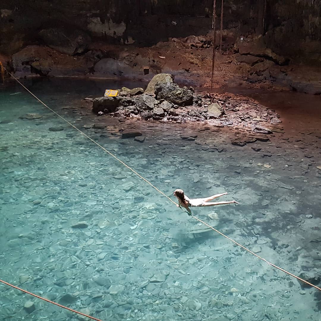 - Cenote Oxman: Este cenote tiene un ambiente más rústico, rodeado de vegetación y con una cueva que lo hace especial. Puedes probar la tirolina si buscas un poco de adrenalina.