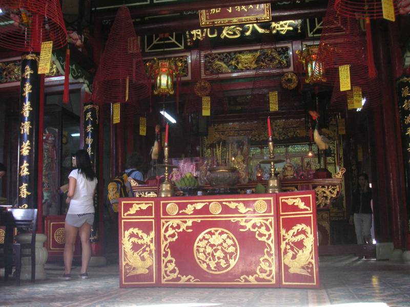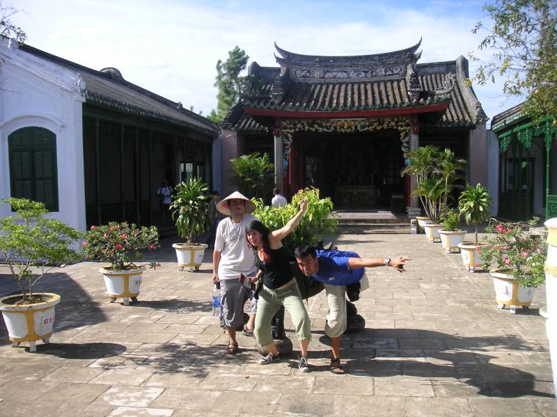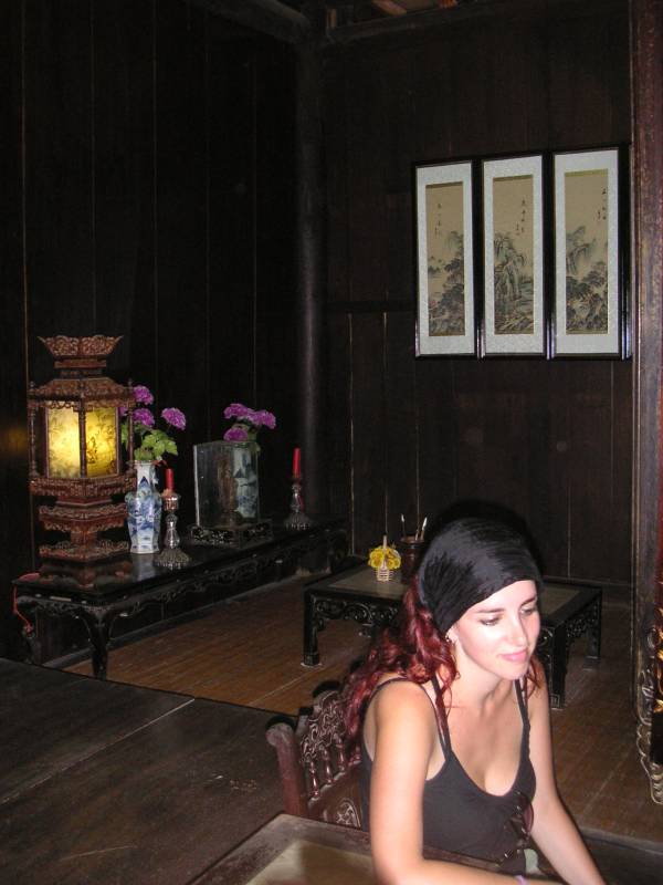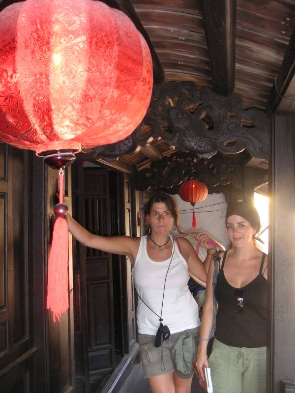 El ticket te obligaba a escoger entre varios monumentos de cada categoría. Estos chinorris daban por hecho que vista una pagoda o una casa antigua, vistas todas. Están fatal. Total que aconsejados por la Lonely Planet (siempre en nuestros corazones), hicimos nuestra decisión salomónica. Empezamos nuestro recorrido por el pueblo por ver una casa antigua, donde había una exposición de cerámicas. Era un poco fraude (sobre todo si las cerámicas te importan tanto como el currículum de un sexador de pollos coreano), pero la casa era muy chula. En el foro de los viajeros nos habían dicho que las casas de Hoi An tenían cientos de años de antigüedad, pero la Lonely nos iluminó con que las tenían que reconstruir cada cierto tiempo porque la madera se deteriora y se queda hecha un cristo. Aún así, el pueblo era chulísimo y pese a los tickets, muy auténtico. Era como viajar al pasado. Casitas bajas de madera, convertidas la mayoría en tiendecitas con artesanías que nos pusieron los dientes muy largos. Madera tallada con motivos antiguos, gongs, infinidad de cuencos, palillos, manteles y demás cosas para la casa y muchos farolillos chinos típicos de China pero que por qué no iban a venderlos ahí también.