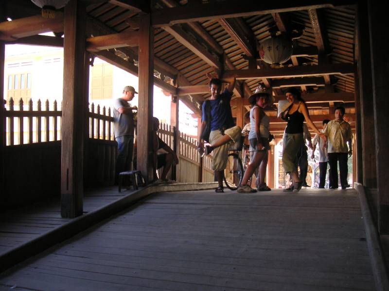 Nos sentamos un rato en la calle, trazando un plan de acción. Sólo nos quedaba ver el famoso puente japonés y alguna calle más y ya lo teníamos visto todo, salvo las tiendas. Había muchísimas, sobre todo talleres de confección de ropa. Eran increíbles. Podías elegir el modelo que quisieras y te lo cosían con la tela que eligieras para la mañana siguiente, por entre 30 y 60 euros dependiendo de la cantidad de trabajo que llevara. Te ofrecían revistas de moda, con las actrices de Hollywood y tal. Hasta nos enseñaron una foto de los jugadores del Real Madrid vestidos de Emidio Tucci. ¡Muy heavy! Pero además estaban las tiendas de farolillos y souvenirs. Teníamos mucho que hacer todavía en Hoi An.