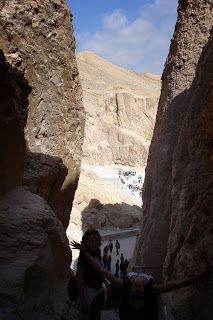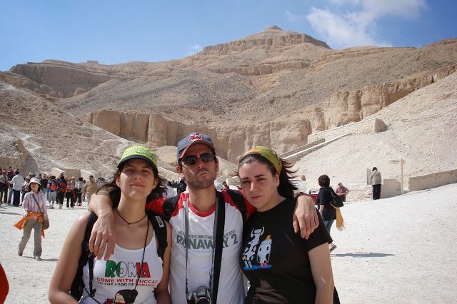 09.00 Primera parada: Valle de los Reyes. No cuela el carnet de estudiante. Picamos en la chorrada del trenecito absurdo que te acerca 200 metros desde la entrada hasta las tumbas. En plan buffet cutre, de todas las tumbas que hay, tienes que elegir tres, excepto la de Tutankamon, que hay que pagarla aparte porque él lo vale. Decidimos jugárnosla a los chinos, pero al final nos elegimos las de los faraones que tienen los nombres más simpáticos o que suenan a enfermedad venérea.