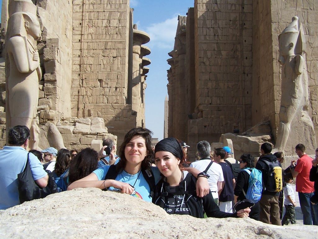 16.15 Nuestro taxista nos espera en la puerta para llevarnos al templo de Luxor. Nos encanta, pero una vez visto Karnak, este impresiona menos. Es gracioso, porque tiene una mezquita colgando y los restos de una iglesia bizantina al fondo, pero lo que más nos mola es la avenida de las esfinges de la puerta. Dicen que en el pasado ambos templos estaban unidos por una avenida de esfinges de dos kilómetros. ¡Vaya tela!
