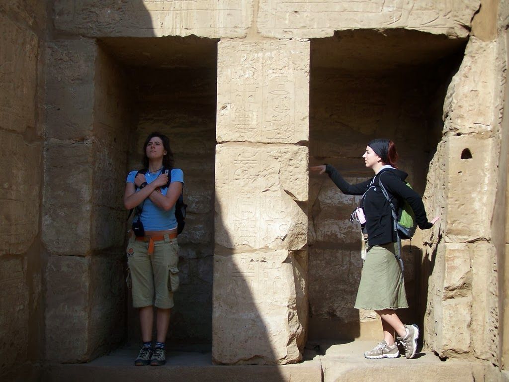 13.30 Salimos pitando a Karnak. Amamos Karnak, porque es sencillamente impresionante y porque somos estudiantes otra vez. Allí nos encontramos con Mestafa, que tampoco se alegra de vernos.